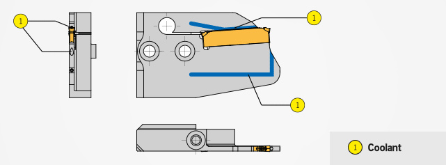 - Cán dao nguyên khối với đường tưới nguội thông qua cho các ứng dụng gia công rãnh xuyên tâm