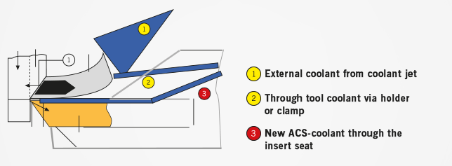 - Tia tưới nguội được thêm vào để tập trung vào mặt sau insert từ phía dưới